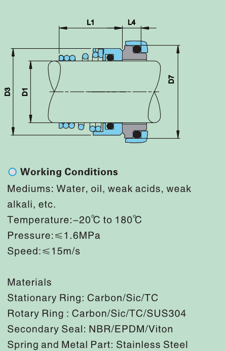 動(dòng)環(huán):Carbon/ Sic/ TC/SUS304